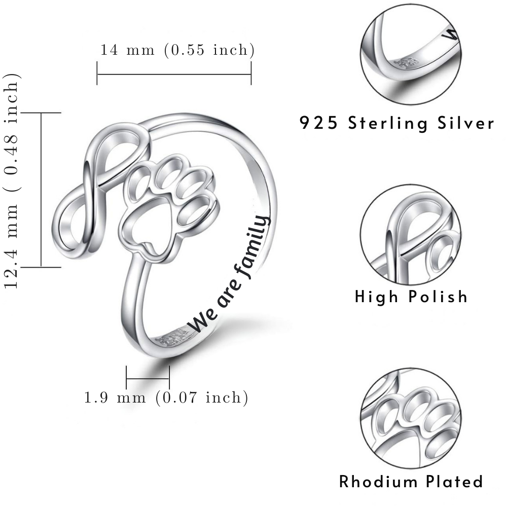 Paw Print Heart Silver Ring – Adjustable Jewelry for Dog & Cat Lovers